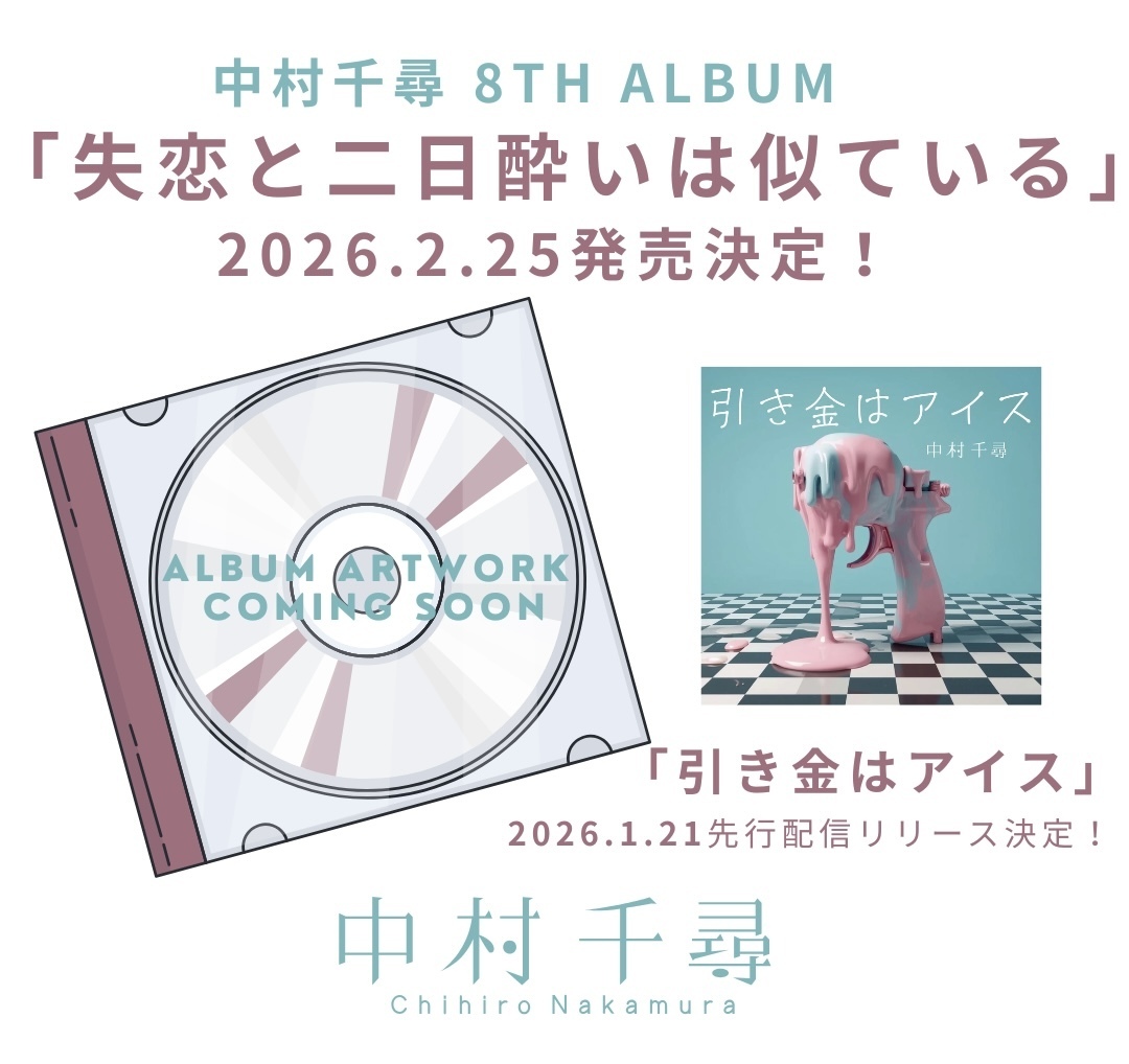 中村千尋 8th Album「失恋と二日酔いは似ている」の発売が、2026年2月25日(水)に決定しました!!!