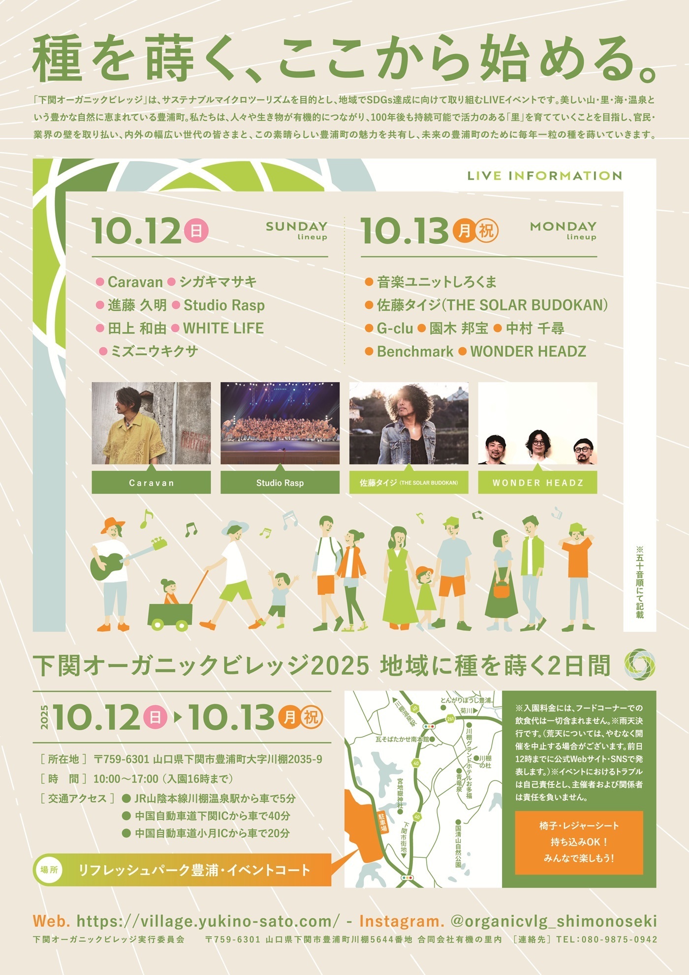 10月13日(月/祝)開催の「下関オーガニックビレッジ2025 」に出演決定!